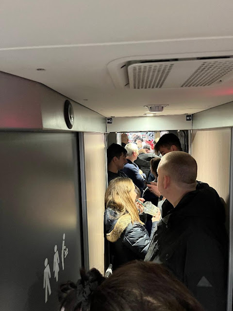 Me too sat on floor near main door of a carriage. Since it is the Private Management control, no alternative has been made. The passengers are adjusted themselves. If it were in India, there will be a hue and cry.